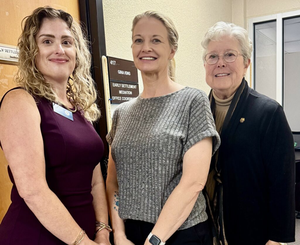NEW Office Space! Jari Askins, representing Cameron University, gave Early Settlement – Southwest program director, Sarah Head, office coordinator, Christina Erwin, and State Director, Phil Johnson, (not pictured) a tour of the new office space the Early Settlement program will be occupying soon. “Cameron University continues to be a great friend and sponsor to the Early Settlement program which serves the communities and courts in southwestern Oklahoma,” Phil Johnson stated.