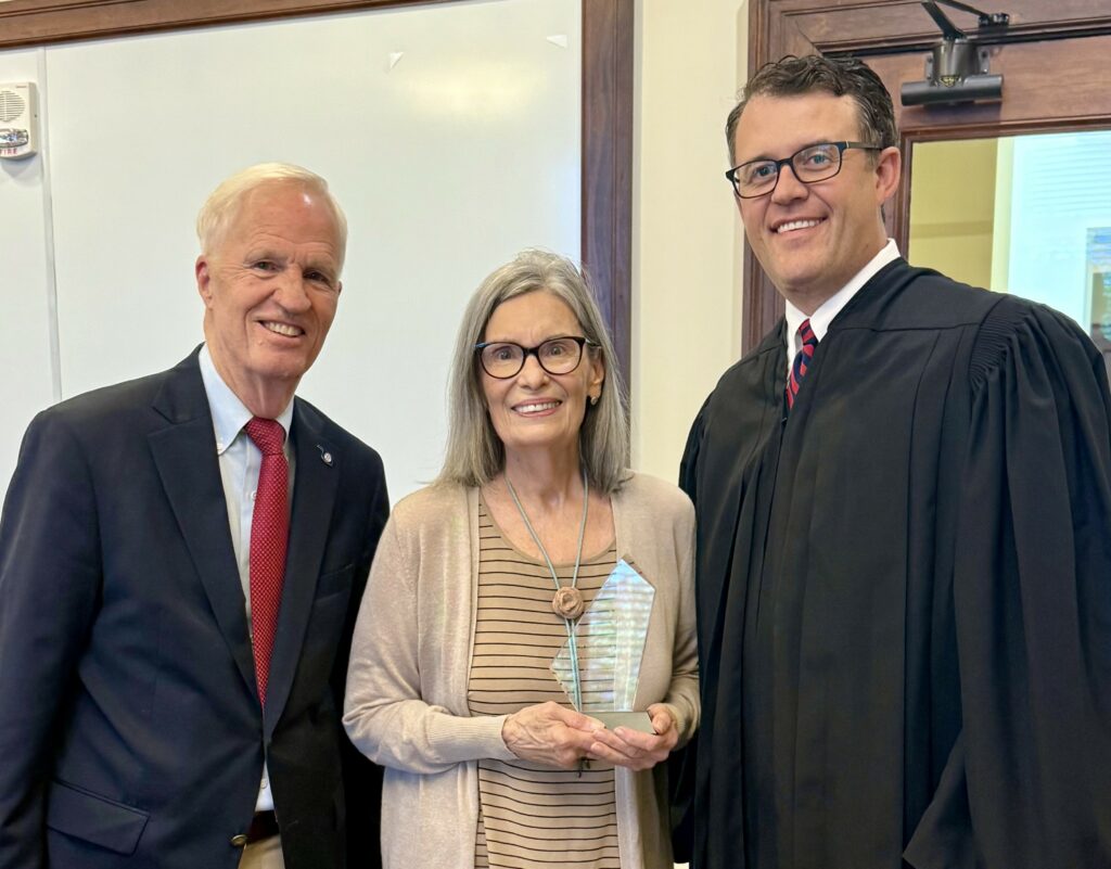 40 Years of Service! Dispute Resolution Advisory Board Chairman, Ted Roberts, and Supreme CourtJustice Travis Jett presented Jane Wheeler with an acrylic award for her 40 years of service to the Dispute Resolution Advisory Board. Jane has served on the board since its inception in 1985 and continues to serve today.