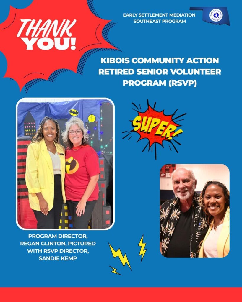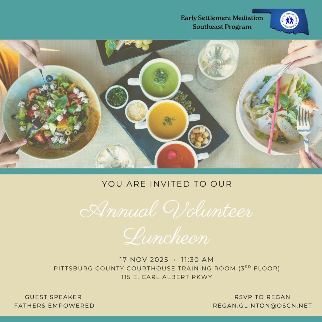 The goal of the Southeast program is to assist individuals in working together to solve problems, play a role in decision-making, and formulate creative solutions to issues in dispute. The mediators are vital to the success of our program in helping resolve community and domestic disputes and offering citizens in Southeast Oklahoma the opportunity to restore peace and trust.